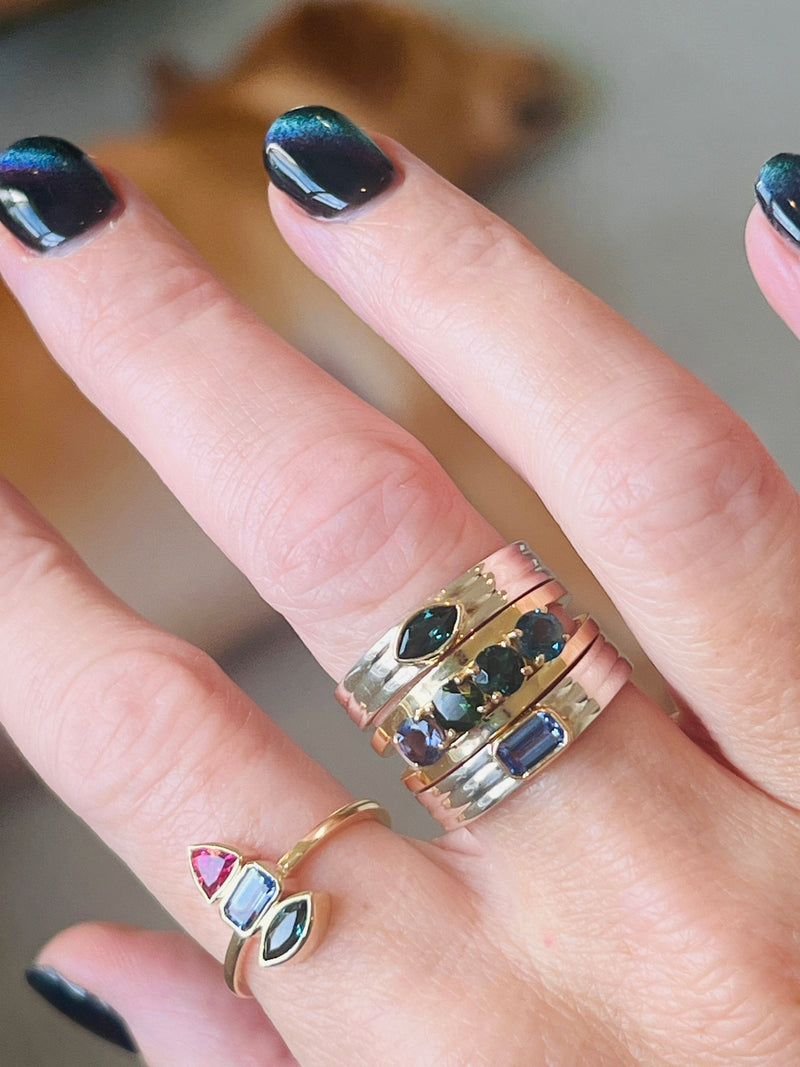 NEW! "Mimi" Gemstone Ring: Lolite, Green Tourmaline, Teal Tourmaline, London Blue Topaz