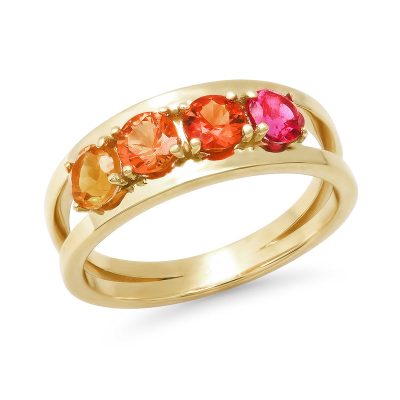 NEW! "Mimi" Gemstone Ring: Pink Tourmaline, Medium and Dark Orange Sapphire, Dark Citrine