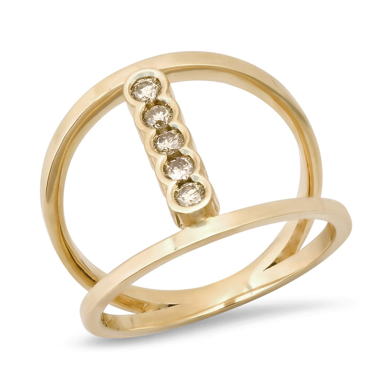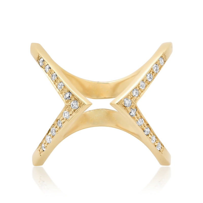 14K Yellow Pave Double Open "V" Ring with Diamonds