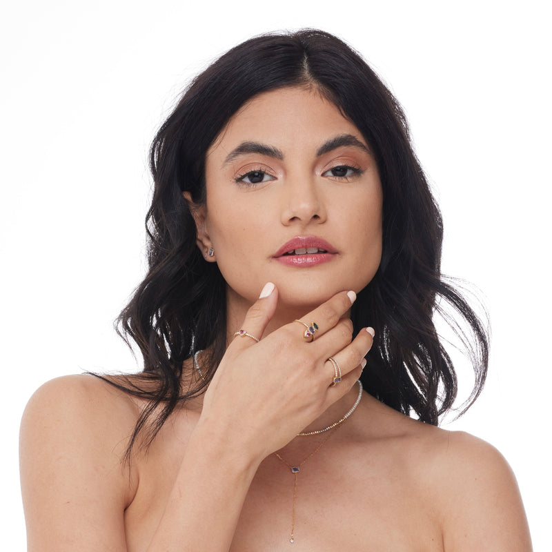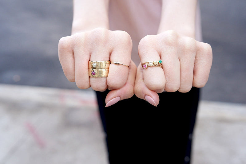 14K Yellow Stackable Pave "Point" Ring with Diamonds, Sapphires, Rubies or Emeralds