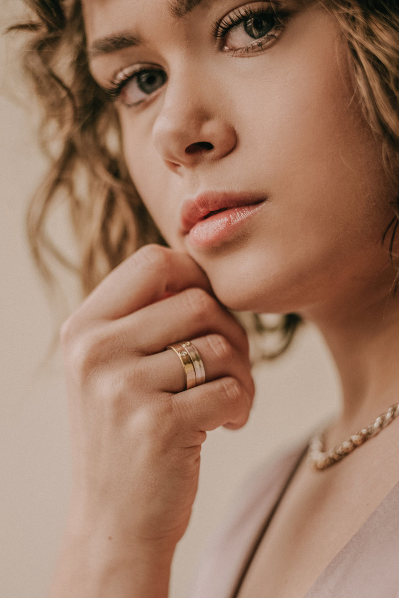 "Liquid Metal" 14K Gold Wide Hammered Band