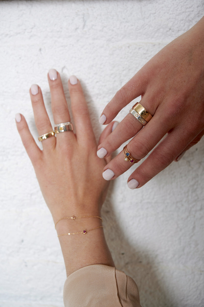 14K Yellow Gold Skinny Diamond Band With Knife Edge Gemstone