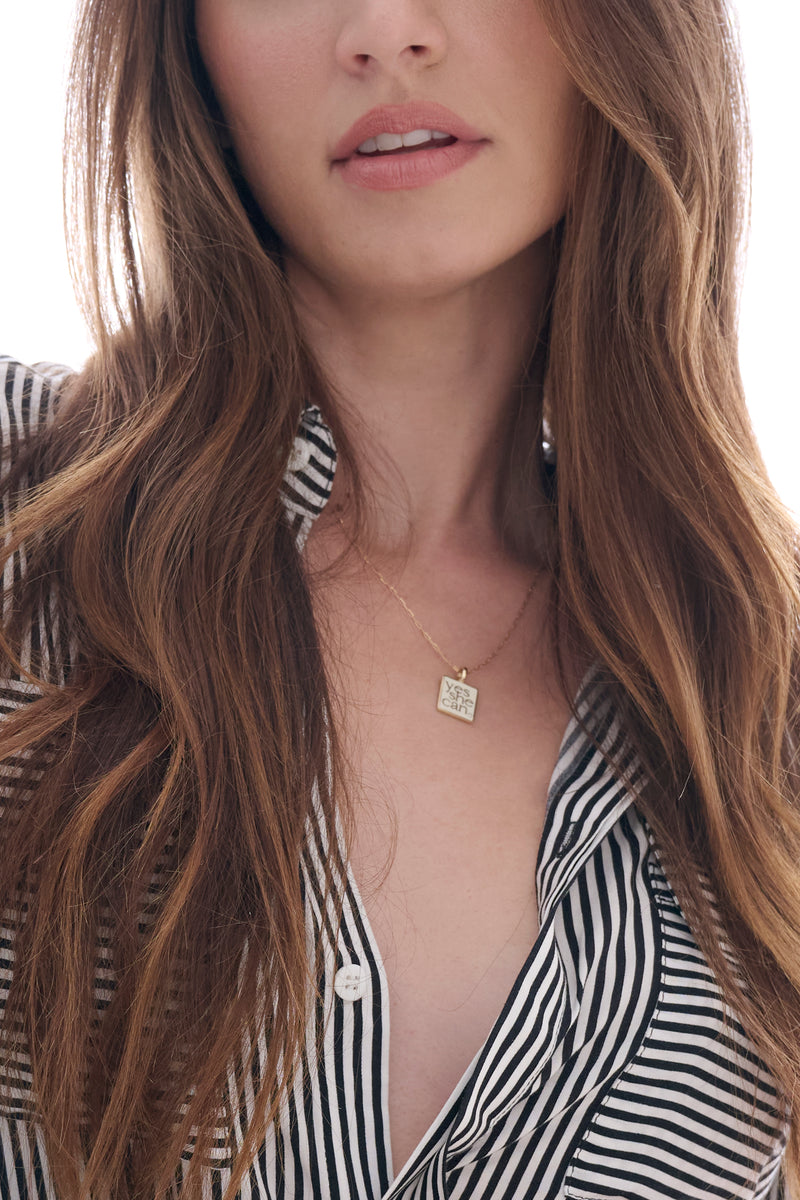 "Yes She Can" 14k Gold Enameled Necklace with Diamond on Mini Paperclip Chain